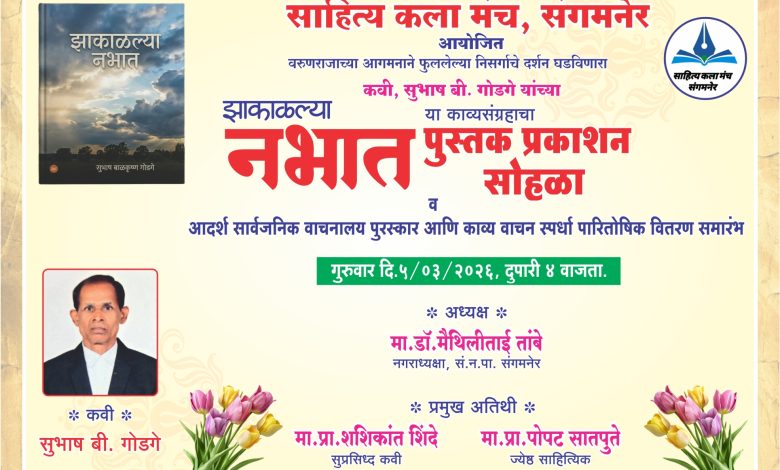 साहित्य कला मंच संगमनेर तर्फे ५ मार्च रोजी ‘झाकाळल्या नभात’ काव्यसंग्रहाचे प्रकाशन